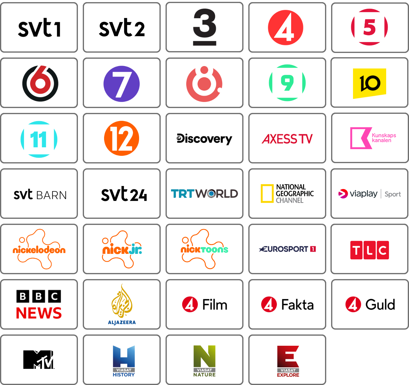 Vi erbjuder tre populära paket: Small, Medium och Large – alla fyllda med olika typer av innehåll som nyheter, underhållning, sport, fakta och barnkanaler.
